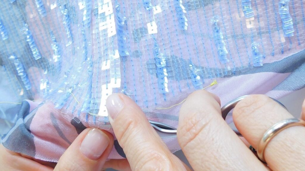 La fase del ricamo è il momento in cui l’idea prende forma, punto dopo punto.